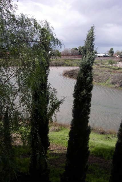 Yesterday I posted saying that we missed the heavy downpours that have hit much of California. While it is true that we are not getting deluged like some other areas, we had tons of rain today. In fact, as you will see in the above picture, we have a catch basin behind our house. It is normally dry throughout the year, but today we have lakefront property!